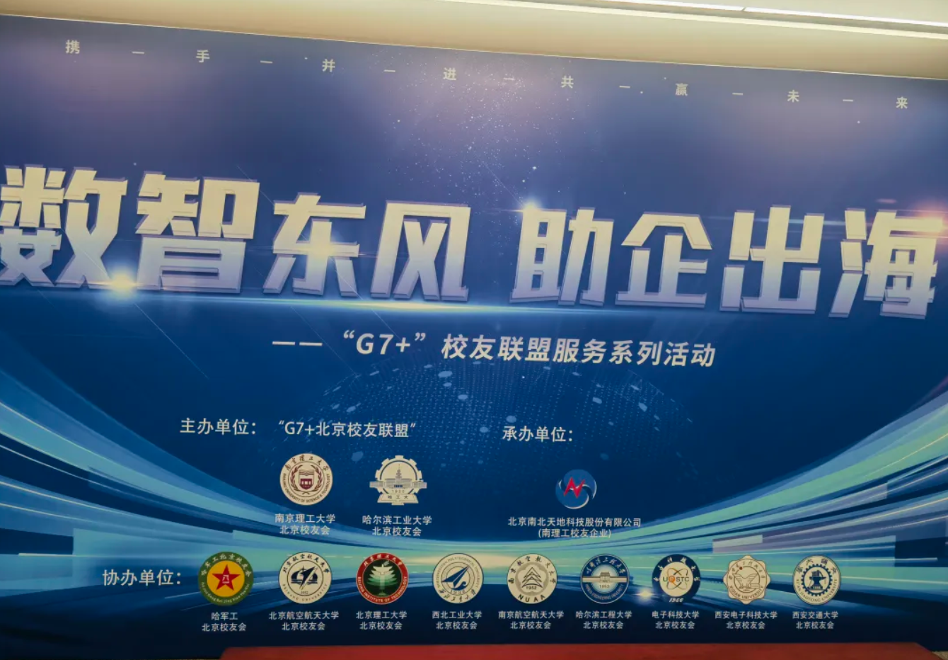 9月17日,南京理工大学北京校友会、哈尔滨工业大学北京校友会联合主办,南京理工大学校友企业——北京南北天地科技股份有限公司承办,哈军工北京校友会等协办的“数智东风 助企出海”主题活动在北京成功举办。本次活动汇聚了“G7+”校友会代表、企业家及行业专家共60余人,以数智技术为翼,以校友经济为桥,共探企业出海新范式。