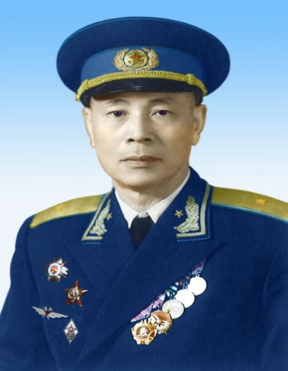 佩戴苏联勋章、奖章、《茹科夫斯基空军工程学院毕业徽章》的中国开国少将唐铎。