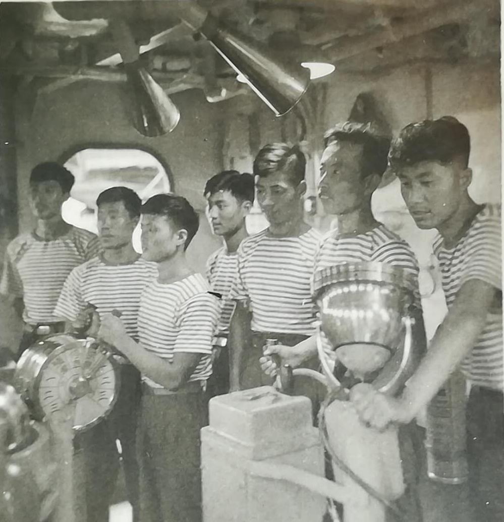 1958年7月14日晚,三系(海军工程系)邓易非政委,为第二天出发参加海上实习的一年级学员作了动员报告。强调要珍惜一个月的宝贵时间;要求大家做到四勤(手、脑、嘴、脚),和五不怕(热、晕、脏、累、严格管理);告诫大家实习的目的就是学会如何做好一个兵。